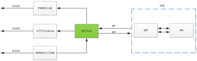本板为脉冲输入输出板( PIO ),由纯硬件电路构成,在实际应用中用于驱动变频器功率模块。本板可将DSP传递过来的PWM信号进行放大输出,将PWM反馈信号进行缩小后传递给DSP进行闭环控制。