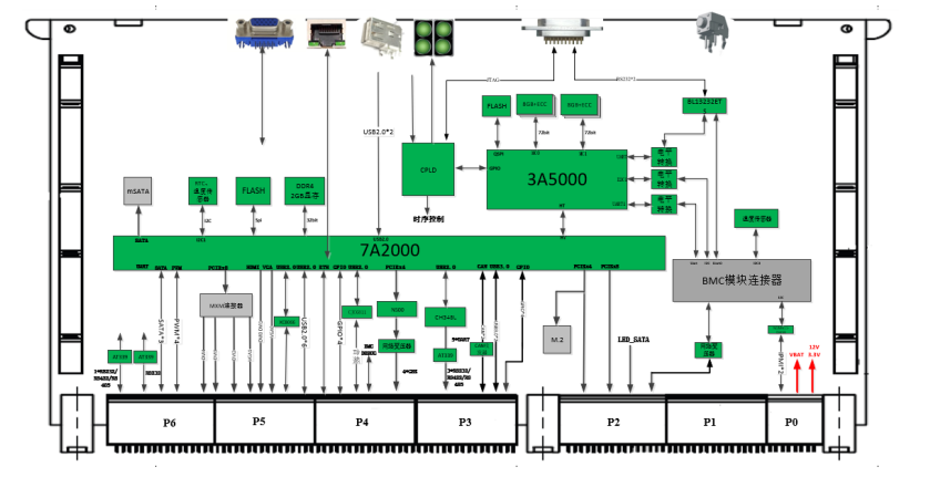 本产品为一款高可靠性的基于龙芯3A5000 处理器 以及 7A2000芯片组的标准6U VPX板卡,具有以太网、SATA、PCIE,以及显示等接口,产品功能框图如图1所示: