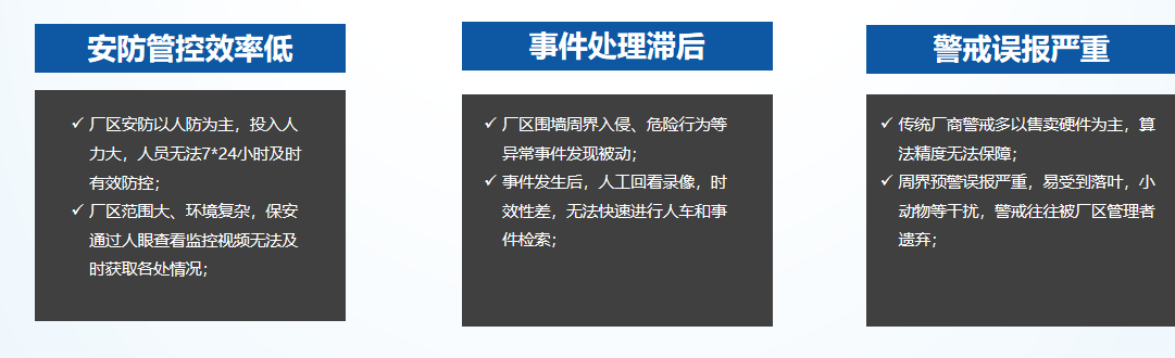 厂区管理存在问题:以传统 监控 为主,智能化程度低