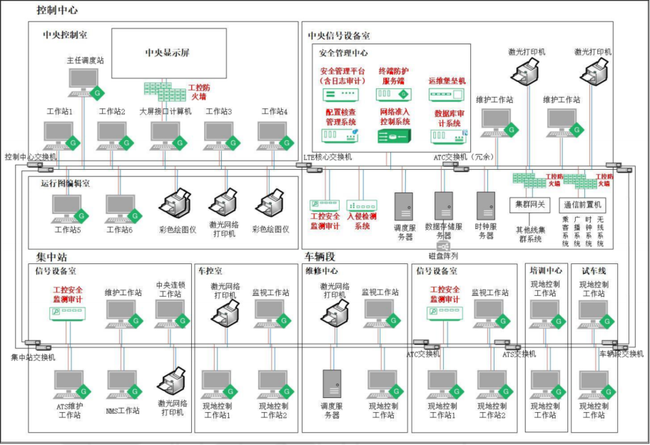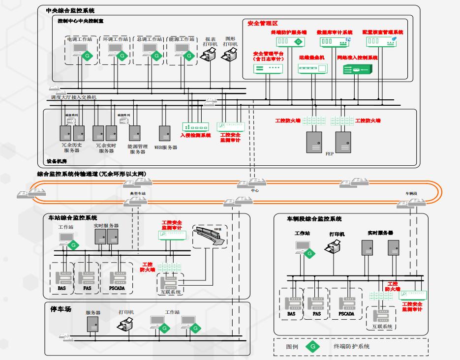 边界防护:在车站、车辆段、停车场、控制中心、备用中心与互连系统接口间冗余部署工控防火墙,实现区域边界防护。
