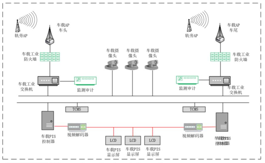 通过在列车头部和尾部分别部署车车载防火墙,对车地通信的流量进行策略控制, 有效的 降低地面业务系统的网络风暴、攻击行为、病毒等扩散到列车。