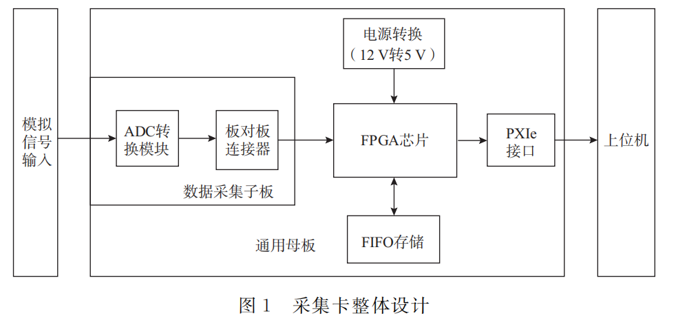 最后数据经过PXIe总线接口传送到 QT上位机进行显示.采集系统框图如图1所示.