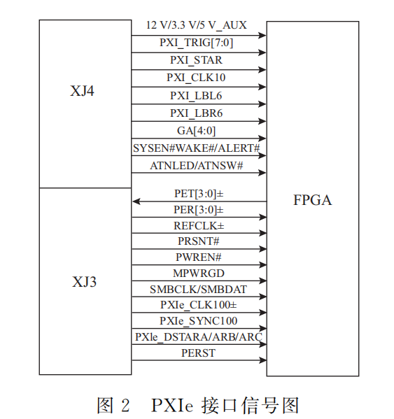 设计3个部分.PXIe接口逻辑设计负责系统与PXIe总线的通信,包括对PXIe协议的解析、
