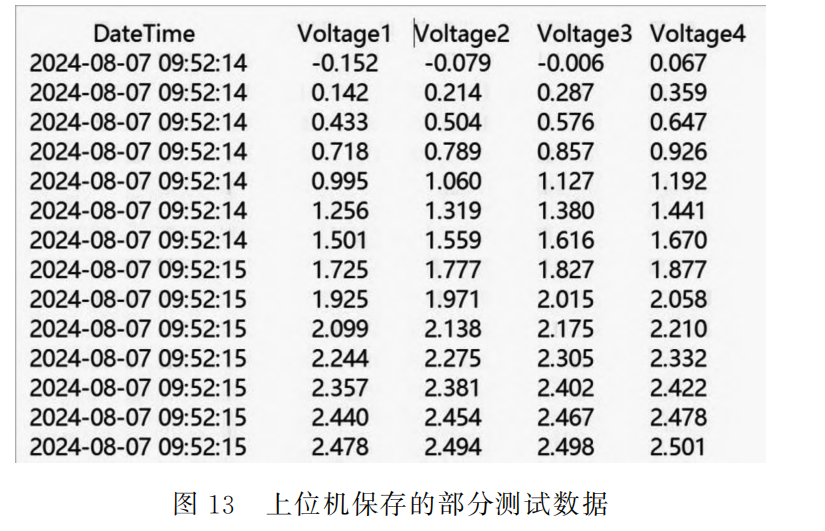 利用上位机中的保存数据功能,将采集到的数据保存到文件中,得到如图13所示的4个