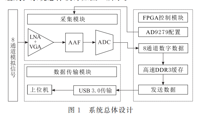 基于 FPGA 的8通道超声信号同步采集与传输系统。系统以FPGA 作为主控芯片,ADI公司的 AD9279作