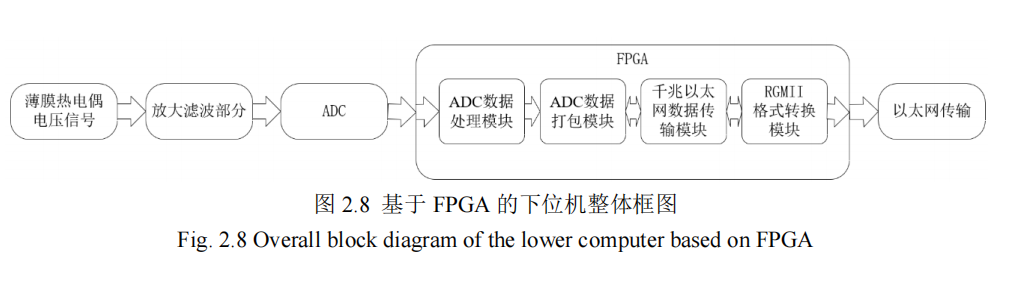 放大的薄膜热电偶电压信号,经过模数转换将数字信号通过并行总线传递给 FPGA,