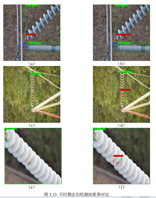 时也在 FPGA 平台对比了改进前后算法检测效果。检测图像中绿色框为绝缘子,红色