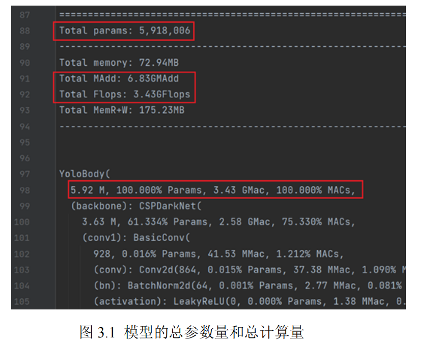 量和总计算量,本文使用 Python 的 torchstat 和 ptflops 这两个工具统计该模型的总计