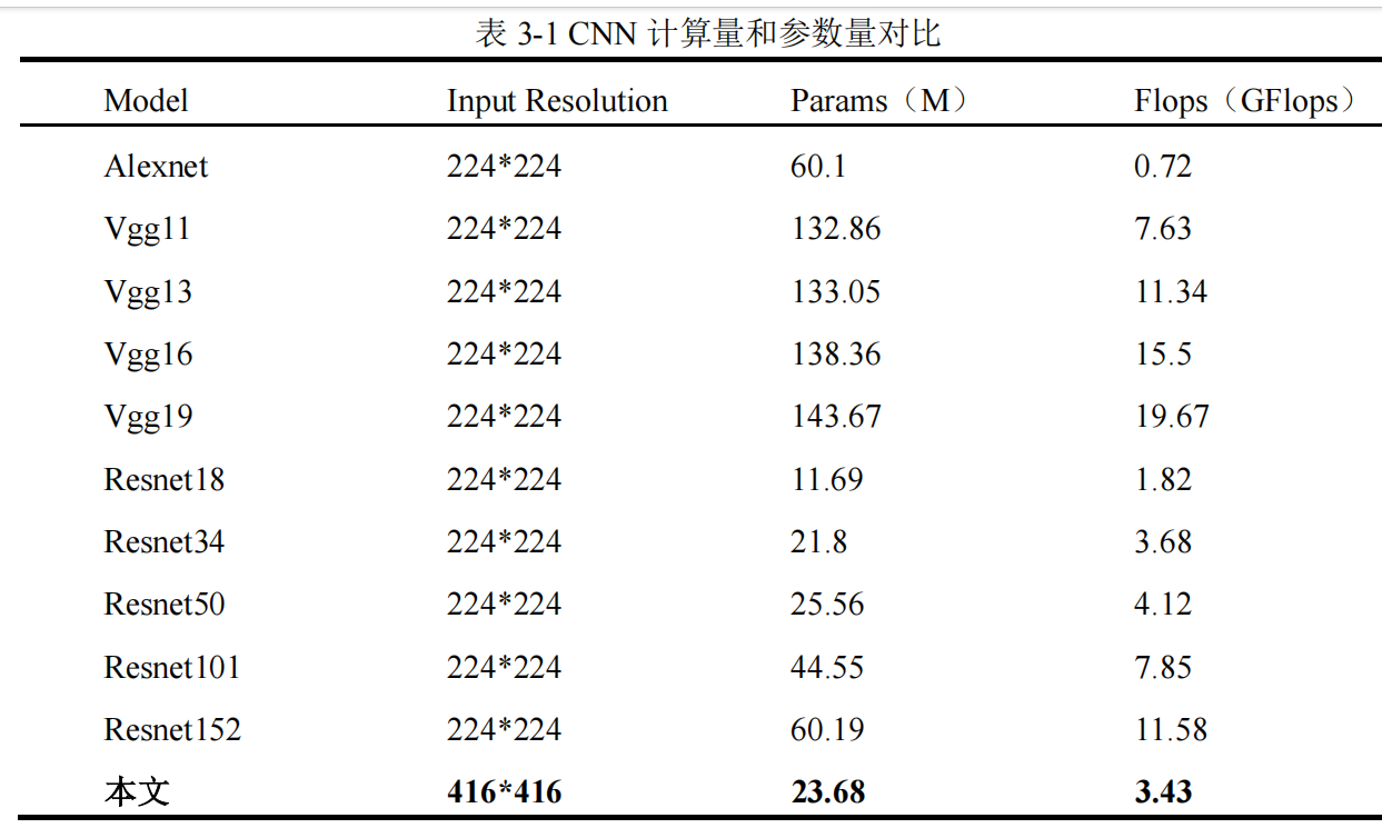如表 3-1 所示为本文选用的轻量化 CNN 与其他 CNN 的总计算量和总参数量对