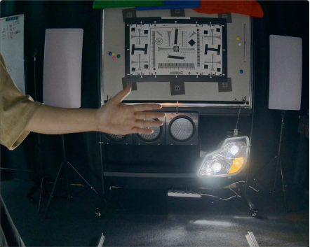 暗光环境下车灯直射对比测试