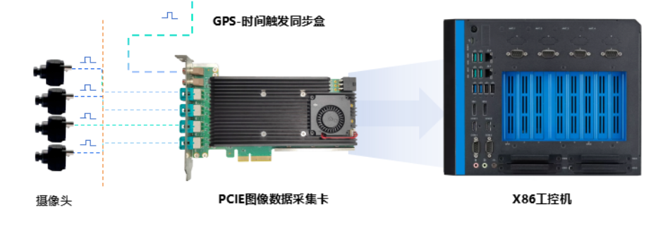 同步盒可生成 10-120Hz 微秒级高精度触发信号,通过GMSL通道高速传输至各摄像头,直接控制其曝光时序,从硬件层面实现曝光同步。此外,GMSL 通道本身具备长距离传输、高带宽、高可靠性及低延迟等核心优势,能为摄像头数据传输的稳定性与完整性提供可靠保障。