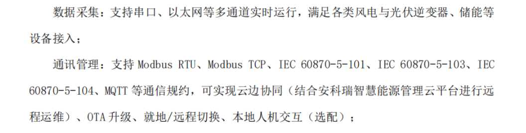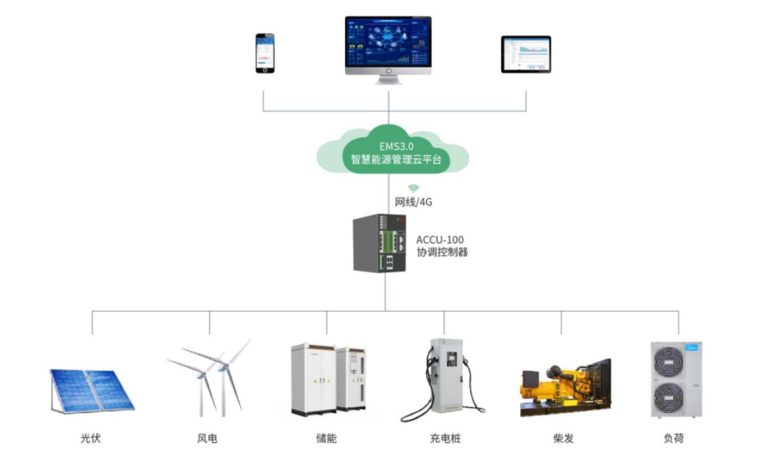 微电网协调控制器是一种应用于微电网、分布式 发电 、储能等领域的智能协调控制器。装置满足系统满足光伏系统、风力发电、储能系统以及充电桩等设备的接入,通过对微电网系统进行全天候数据采集分析,监视光伏、风能、储能系统、充电桩运行状态及健康状况,并在此基础上以安全经济优化运行为目标,获取最优控制策略进而对微电网实施调节控制,实现微电网分布式能源、储能系统、负荷的实时动态调节功能,促进新能源就地化消纳,提高电网运行稳定性、补偿负荷波动:有效实现微电网的需求管理,提高微电网运行效率、降低供电成本,保障微电网安全、可靠、经济运行。