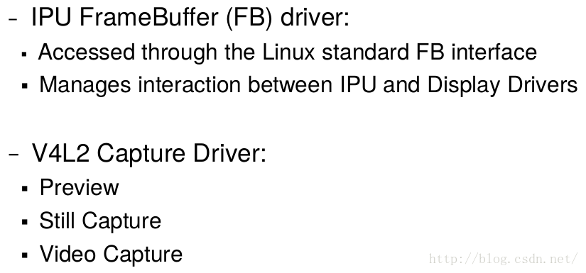 从这个框架中可以看出来,对于一般的 V4L2 子系统,会通过IPU来与硬件通信。